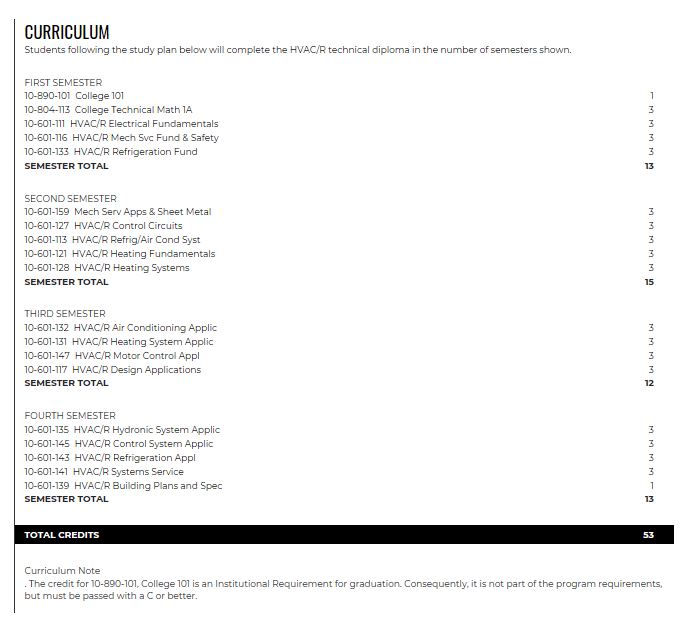 The two-year Heating, Ventilation, Air Conditioning, and Refrigeration (HVAC/R) Technician technical diploma prepares students for an entry-level career in heating, ventilation, air conditioning, and refrigeration. HVAC/R technicians install, service, troubleshoot, and repair HVAC/R systems used for the environmental control of buildings and product processes. This includes work on a wide variety of equipment types including residential (homes), commercial (restaurants, offices, hotels), institutional (schools, hospitals), and industrial (manufacturing plants). Although HVACR technicians are trained to install, maintain and repair heating, air conditioning and refrigeration systems, many focus their work on installation, maintenance or repair. Some technicians specialize in one or more specific aspects of HVACR such as radiant heating systems, solar panels, testing and balancing, or commercial refrigeration. Show More
